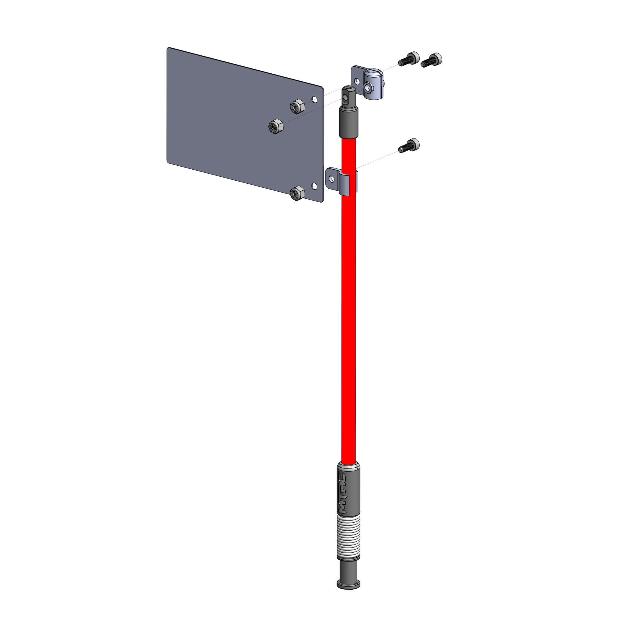 Connecting your Flag to your TrickWhip takes just a few simple steps. First, using a supplied screw and nut, connect the Upper Cap to the top hole on the Flag.